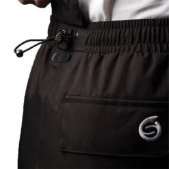 - Dual lining – micro-mesh stretch in seat, polyester taffeta lining in legs for breathability and comfort. Elasticated waistband with double stud button and draw cord fastening and gunmetal toggles